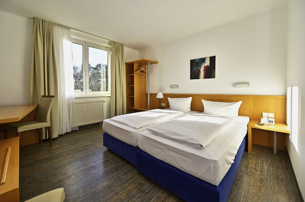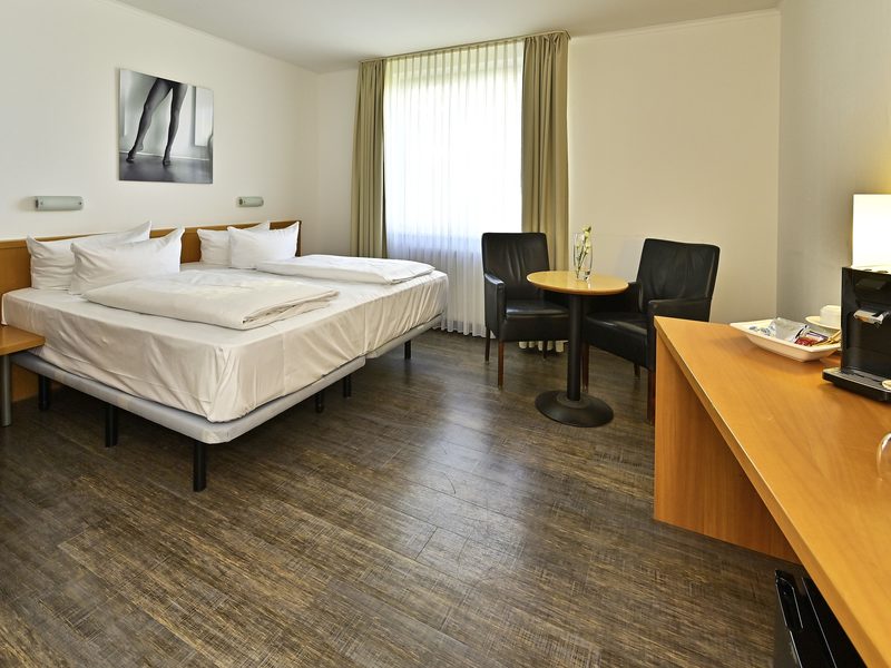Standard Zimmer: Doppel- und Einzelzimmer, Bad / Dusche / Fön, Flatscreen TV, Schreibtisch, Kofferablage, einige Zimmer mit Verbindungstür als Familienzimmer geeignet.
