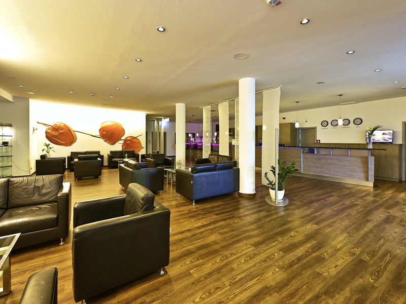 Zudem befindet sich im Erdgeschoss die großzügige Lobby mit Barbereich, unser Hotelrestaurant mit Sonnenterasse sowie drei Konferenzräume für bis zu 70 Personen. Direkt vor dem Hotel befindet sich eine Bushaltestelle mit direkter Verbindung in die Innenstadt.