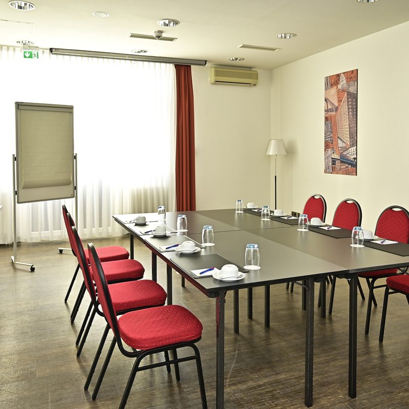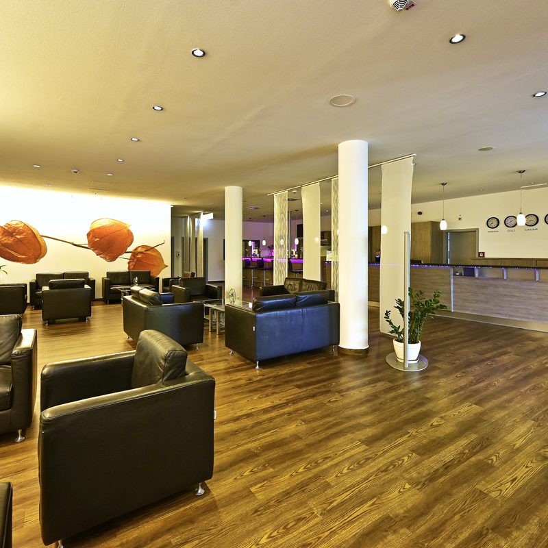Zudem befindet sich im Erdgeschoss die großzügige Lobby mit Barbereich, unser Hotelrestaurant mit Sonnenterasse sowie drei Konferenzräume für bis zu 70 Personen. Direkt vor dem Hotel befindet sich eine Bushaltestelle mit direkter Verbindung in die Innenstadt.